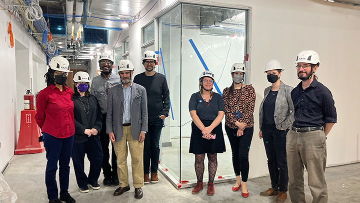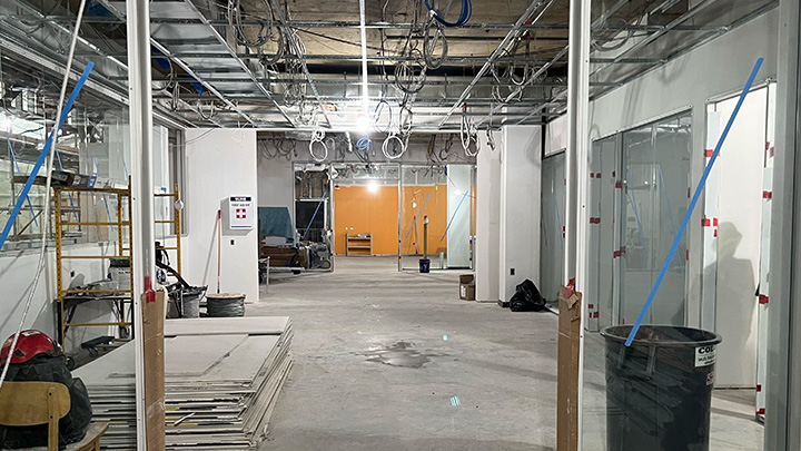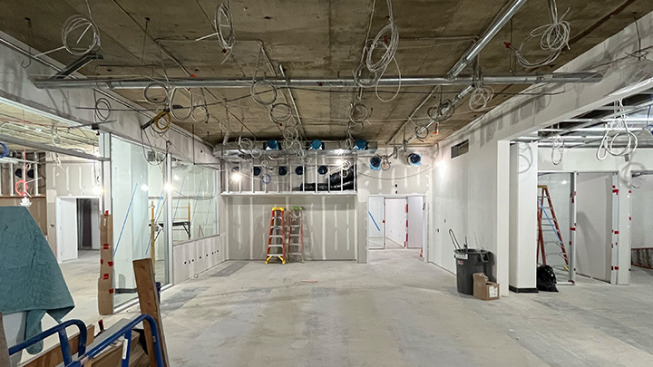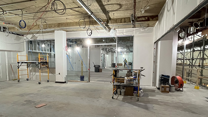 May 2025 Facing the new Reception Area. Facing the new Reading Room. Facing the Mark Samuels Lasner Collection space. Layers of flooring reveal renovations and updates since Morris Library’s original construction in 1961. Full length view of construction area (facing South). Full length view of construction area (facing Southwest). August 2025 Facing the new Reception Area. Facing the new Reading Room. Facing the Mark Samuels Lasner Collection space. Scaffolding and construction roofing. Full length view of construction area (facing South). Full length view of construction area (facing North). September 2025 Facing the new Reception Area. Facing the new Reading Room. Facing the Mark Samuels Lasner Collection space. Ray Foster, IMC construction superintendent and library staff Shelly McCoy and Trevor Dawes tour the construction area in September 2025. Full length view of construction area (facing South). Full length view of construction area (facing North). October 2025 Facing the new Reception Area. Facing the new Reading Room. Facing the Mark Samuels Lasner Collection space. Special Collections staff tour the construction area in October 2025. Full length view of construction area (facing South). Full length view of construction area (facing North).